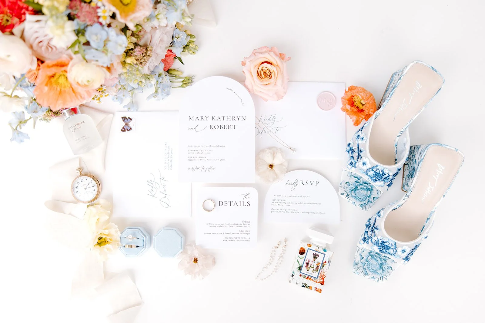 What says a summer wedding better than a colorful wedding palate? Rob and MK incorporated bright colors, mementos and moments that were truly special. MK wore a diamond necklace that was given to her by her grandmother and Rob kept a pocket watch from his grandfather with him throughout the day. Their day was focused around things they wanted to do like sharing their vows privately while also putting an emphasis on having fun! Their reception was full of energy, laughing and dancing (and of course, singing Rocky Top at the top of their lungs)! Their day truly encompassed what was important to them.